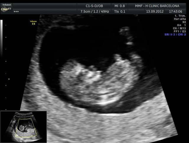 A las 10 semanas de embarazo el embrión ya mide unos 23 milímetros. Ecografía de la semana 10. Orejas nariz párpados.